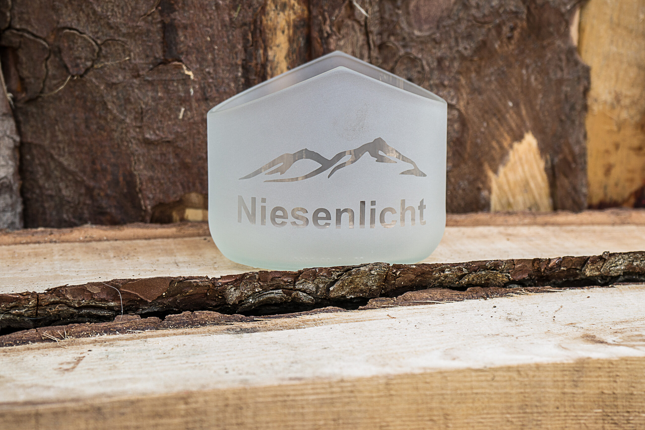 Handgefertigtes Glaslicht, das den Kraftberg Niesen abbildet. Von hier – für dich!